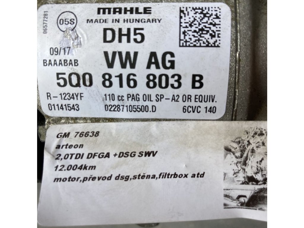 5Q0816803B air compressorOriginal disassembled part from VW Arteon