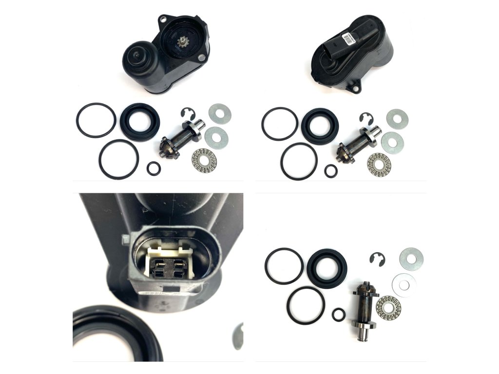 Servomotor für Bremssattel mit Montageteilen.