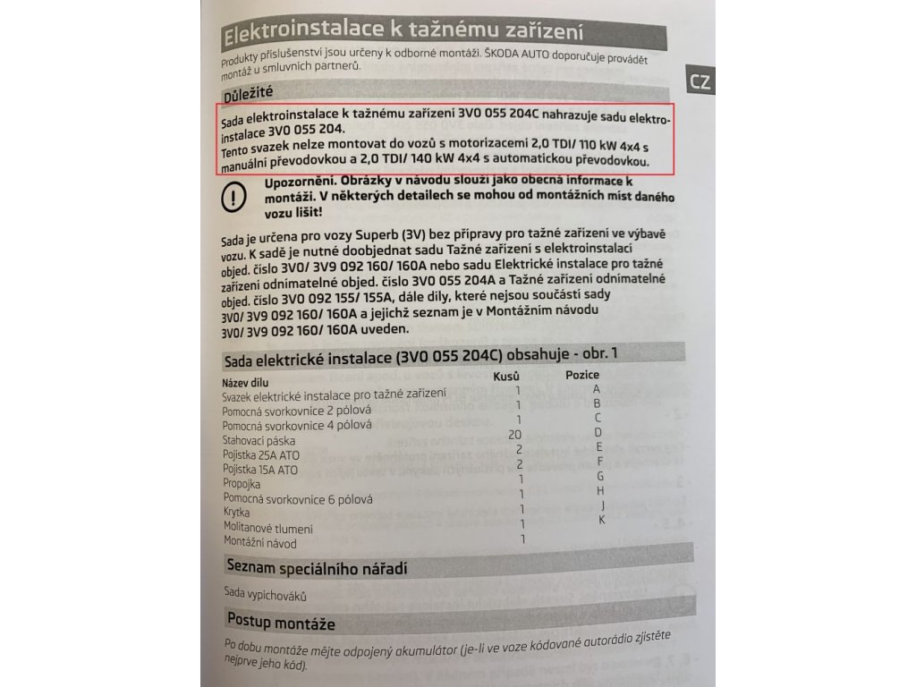 This harness cannot be fitted to vehicles with 2.0 TDI / 110kW 4x4 with manual transmission and 2.0 TDI / 140kW 4x4 with automatic transmission.